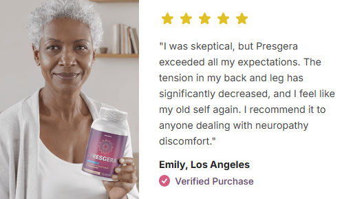Presgera is manufactured in a GMP-certified facility in the USA, ensuring the highest standards of quality and safety. It is non-habit forming, easy to use, and suitable for individuals of all ages experiencing nerve discomfort. With thousands of positive reviews and a 60-day money-back guarantee, Presgera offers a trusted, natural solution to help people regain control of their lives and feel comfortable again.
